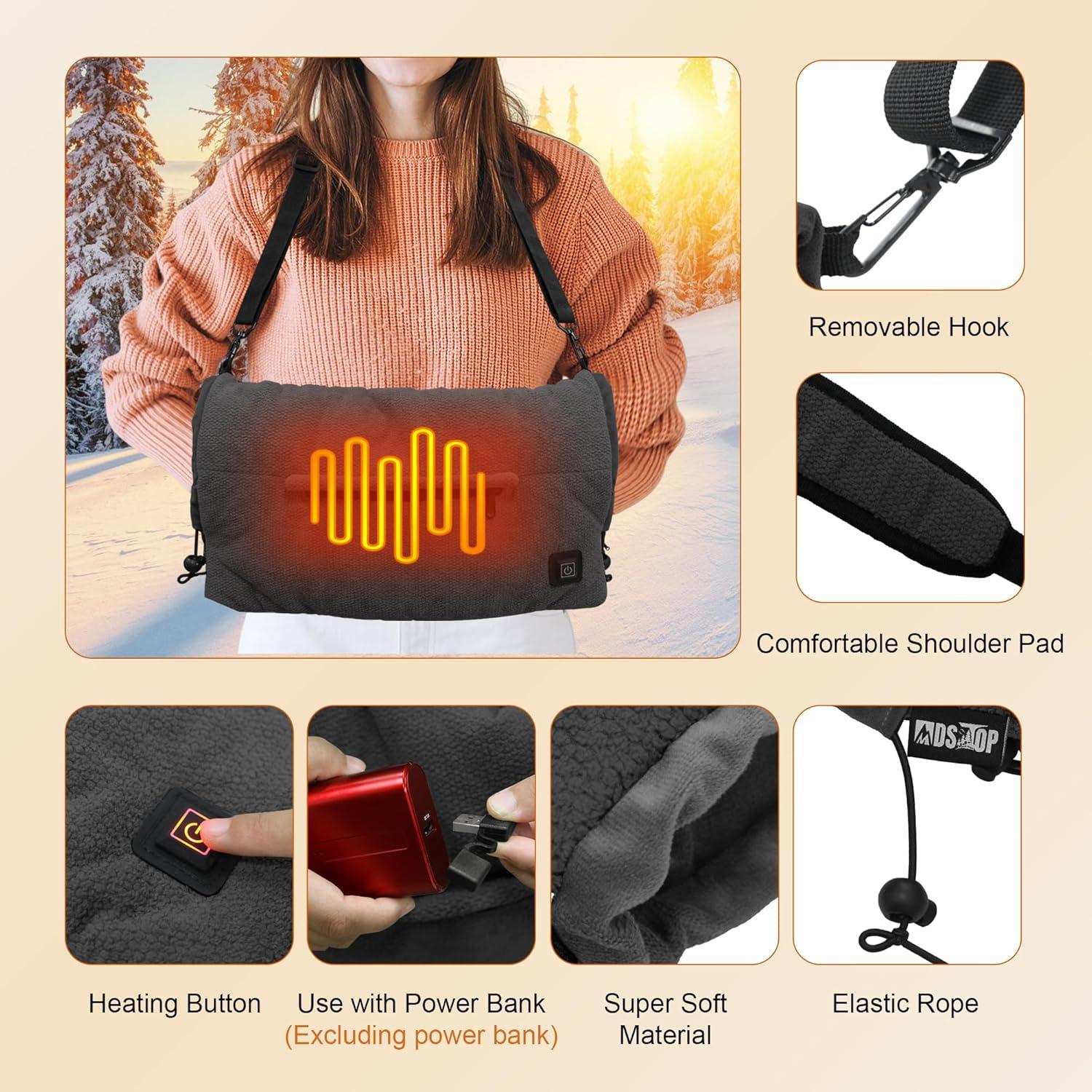 Ideal Gifts: Equipped with a shoulder strap and zipper pocket, this hand warmer is lightweight and portable, allowing you to relax on the office or at home or outdoor. Its advantage is that it is as convenient as a pocket, but the difference is that it can warm your hands faster. Perfect as birthday gift, thanksgiving gift and Christmas gift for Mom, Dad, Friends.
