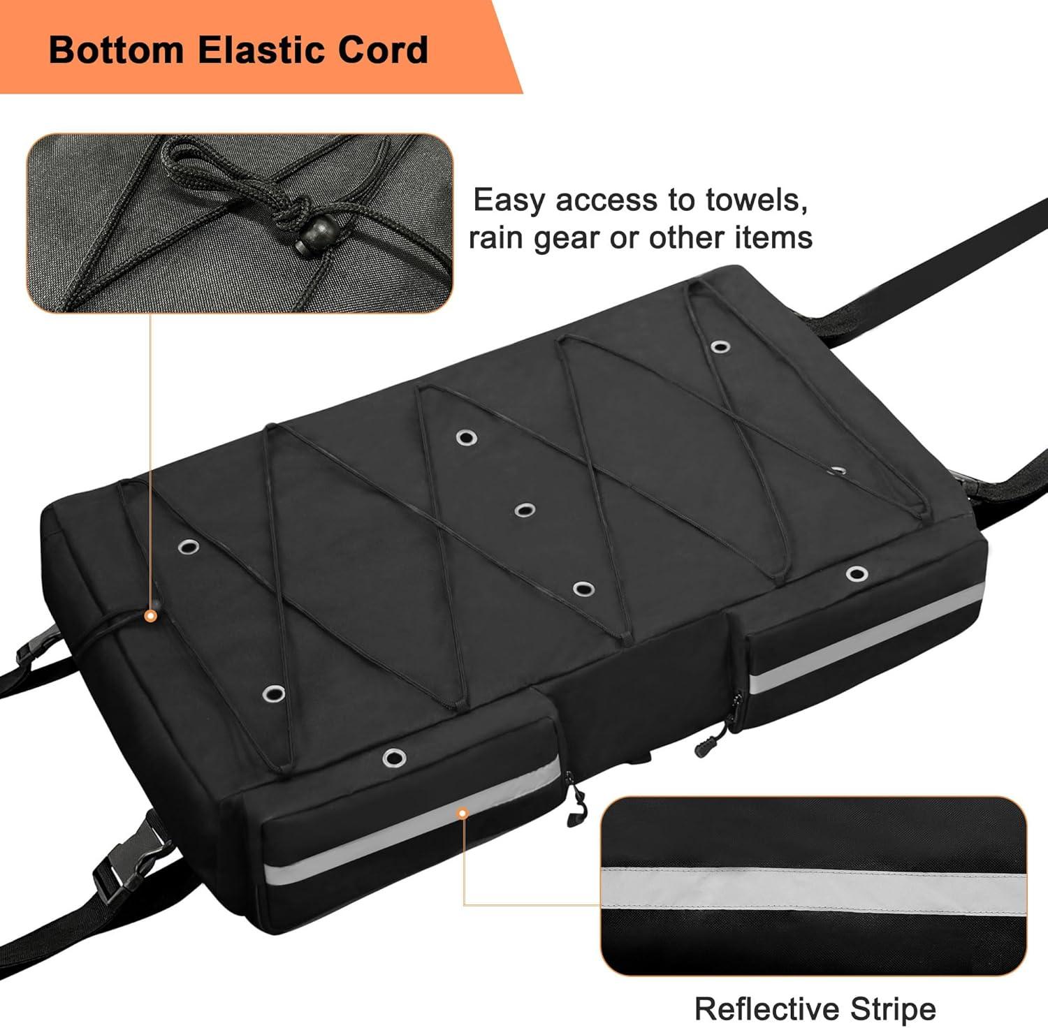 AMPLE STORAGE CAPACITY: Our T-Top storage bag is not only has a large compartment. There are 2 extra pockets on the front, 2 zipper pockets and 1 mesh pocket, which can help us store towels, sunglasses, fishing gear, sunscreen, mobile phones, first aid items and other small items. The elastic cord at the bottom can be used to store towels, rain gear and other items. Providing us with classified storage space